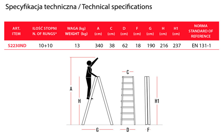 Drabina dwustronna z głębokimi stopniami ND 10+10