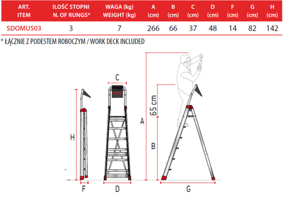- Wygodny stopień o głębokości 13cm o dużej wytrzymałości.