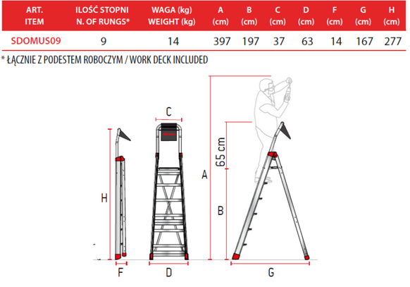 - Wygodny stopień o głębokości 13cm o dużej wytrzymałości.
