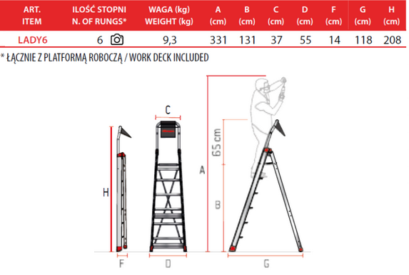 Profesjonalna drabina aluminiowa Lady 6 stopni