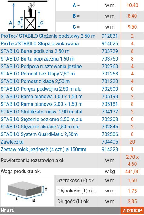 STABILO 50 1,50 x 2,50 wys. robocza 10,40 m