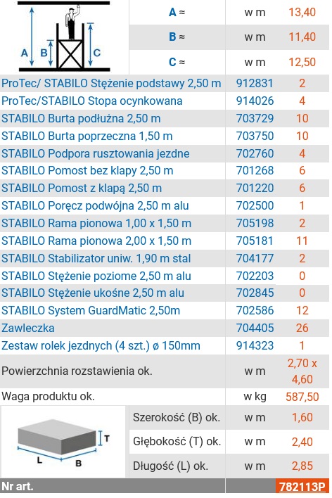 STABILO 50 1,50 x 2,50 wys. robocza 13,40 m