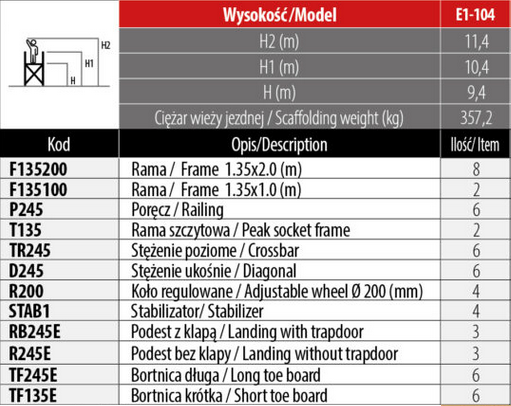 WIEŻE JEZDNE TOP SYSTEM 135 x 245 cm
