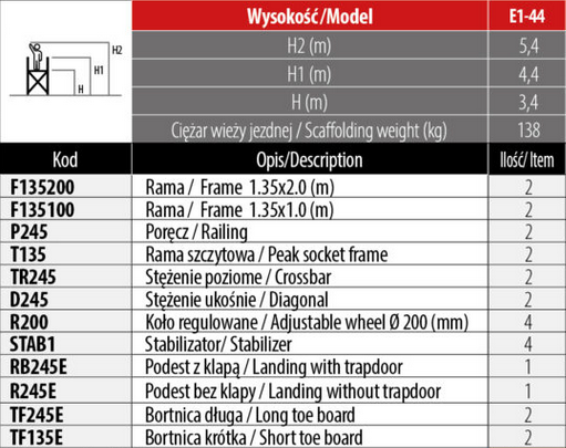 WIEŻE JEZDNE TOP SYSTEM 135 x 245 cm