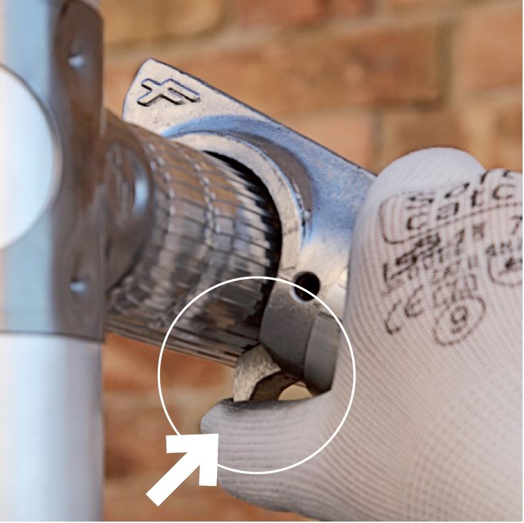 • Mocowanie szczebli ze stali nierdzewnej, bez spawania poprawia stabilność rusztowania o 50% i przedłuża jego żywotność.